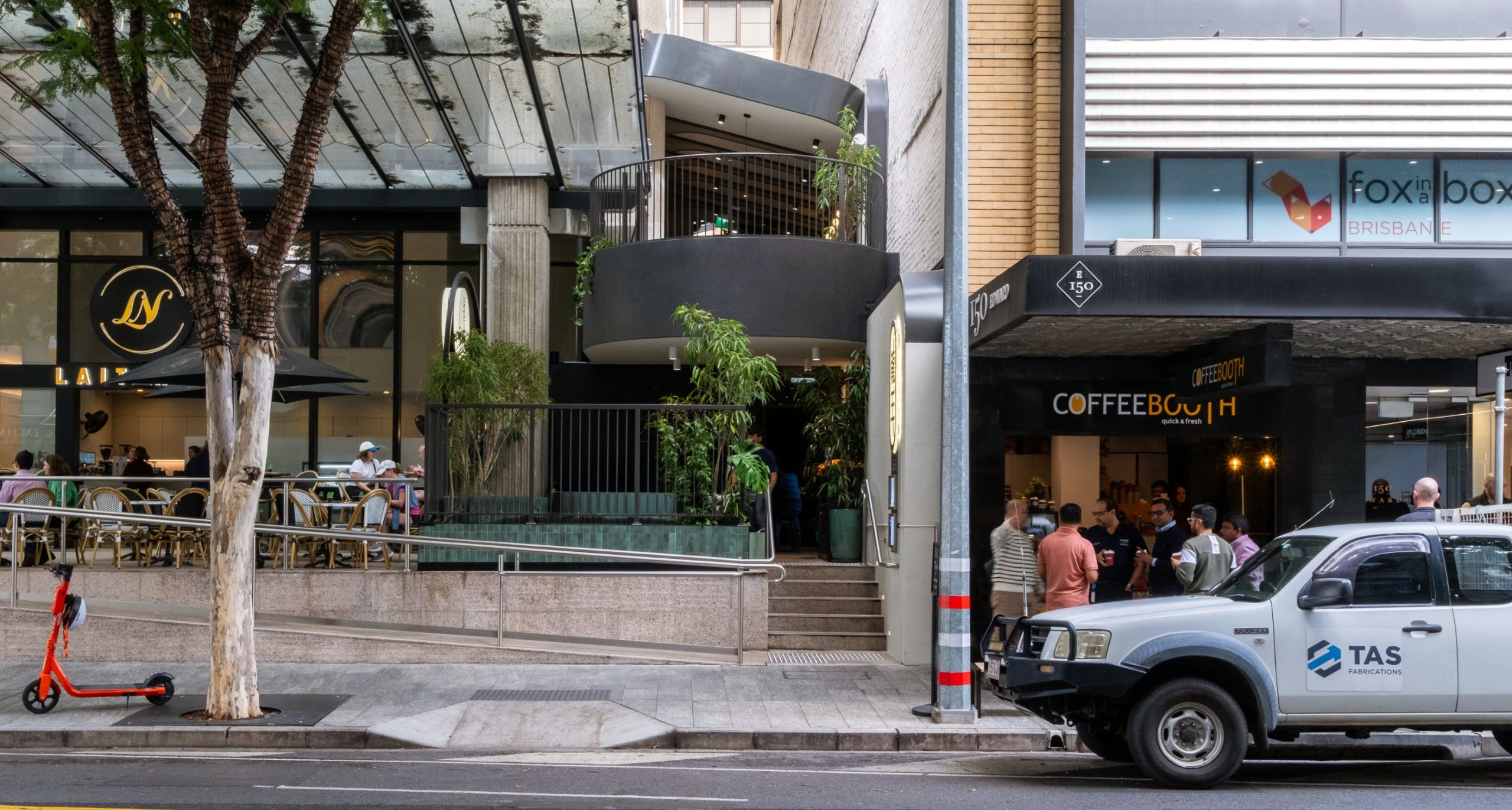 Swipe to see before and after – transforming an empty laneway void between two buildings to create a three-level restaurant.