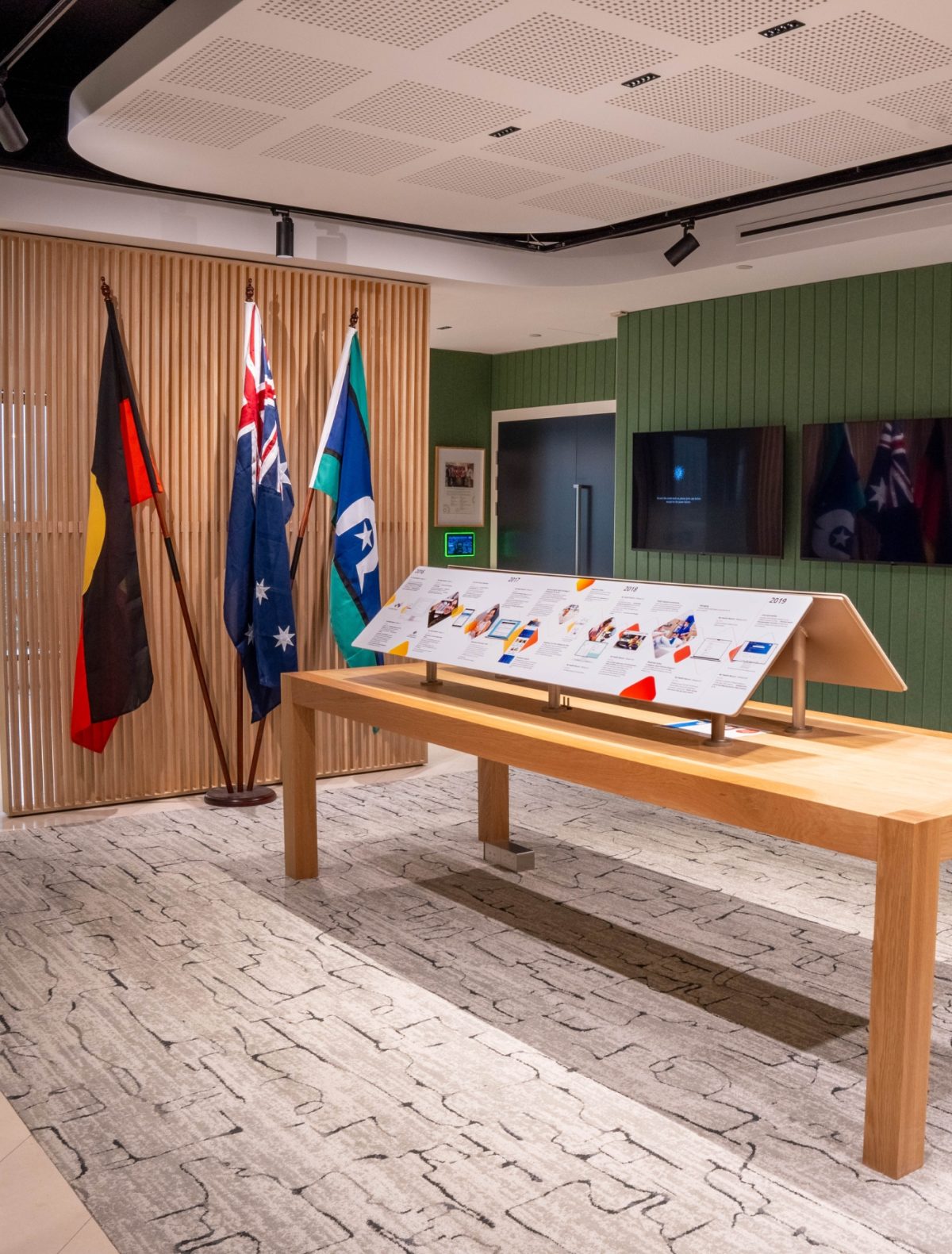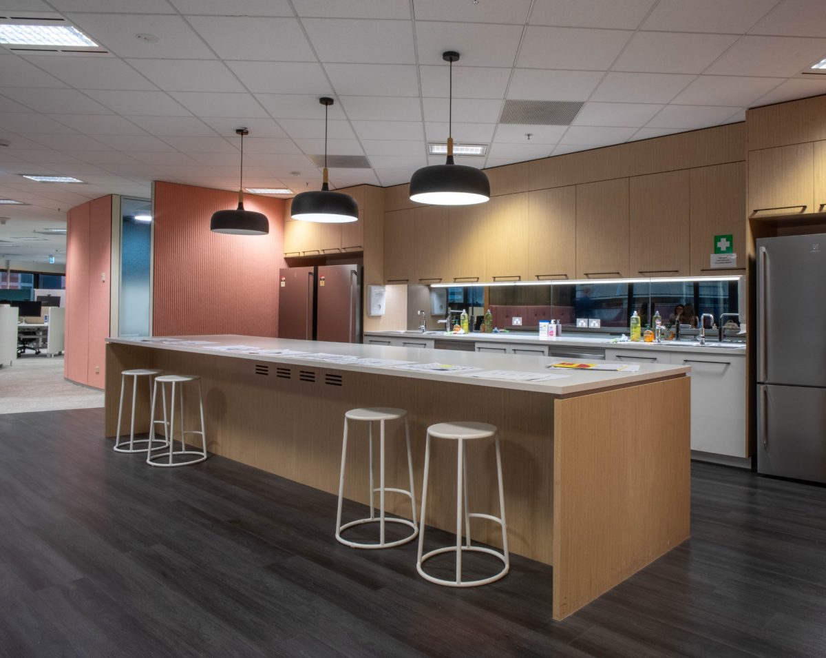 Given this open plan concept, our teams paid special attention to the acoustic design to ensure a comfortable working experience for the agency. Decorative acoustic panels were used throughout the office fitout, ensuring this comfortable environment while providing a decorative finish.