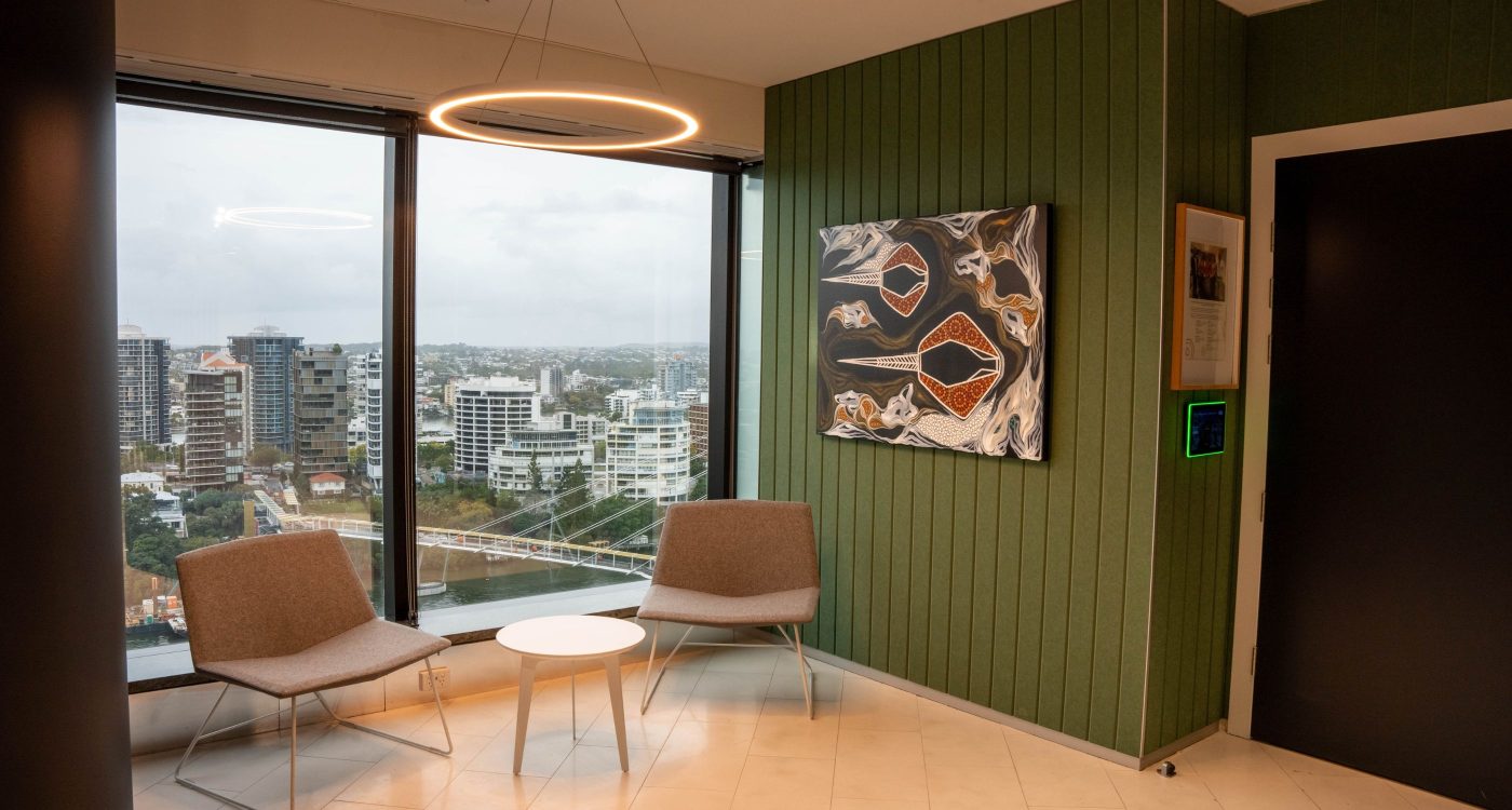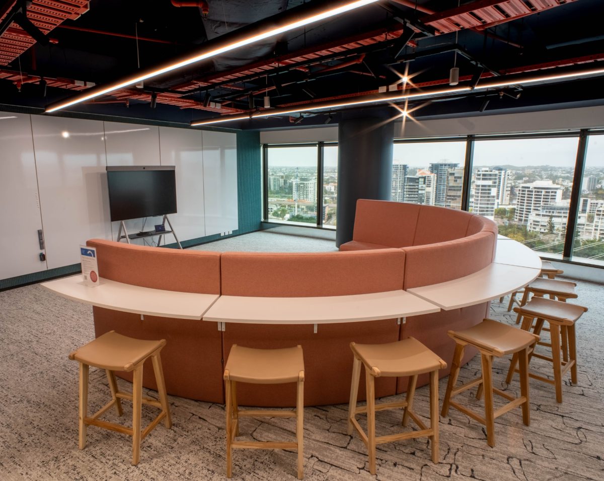 Expertly designed by Brown James, the space takes advantage of sweeping views of the Brisbane River through open plan individual and collaborative areas.