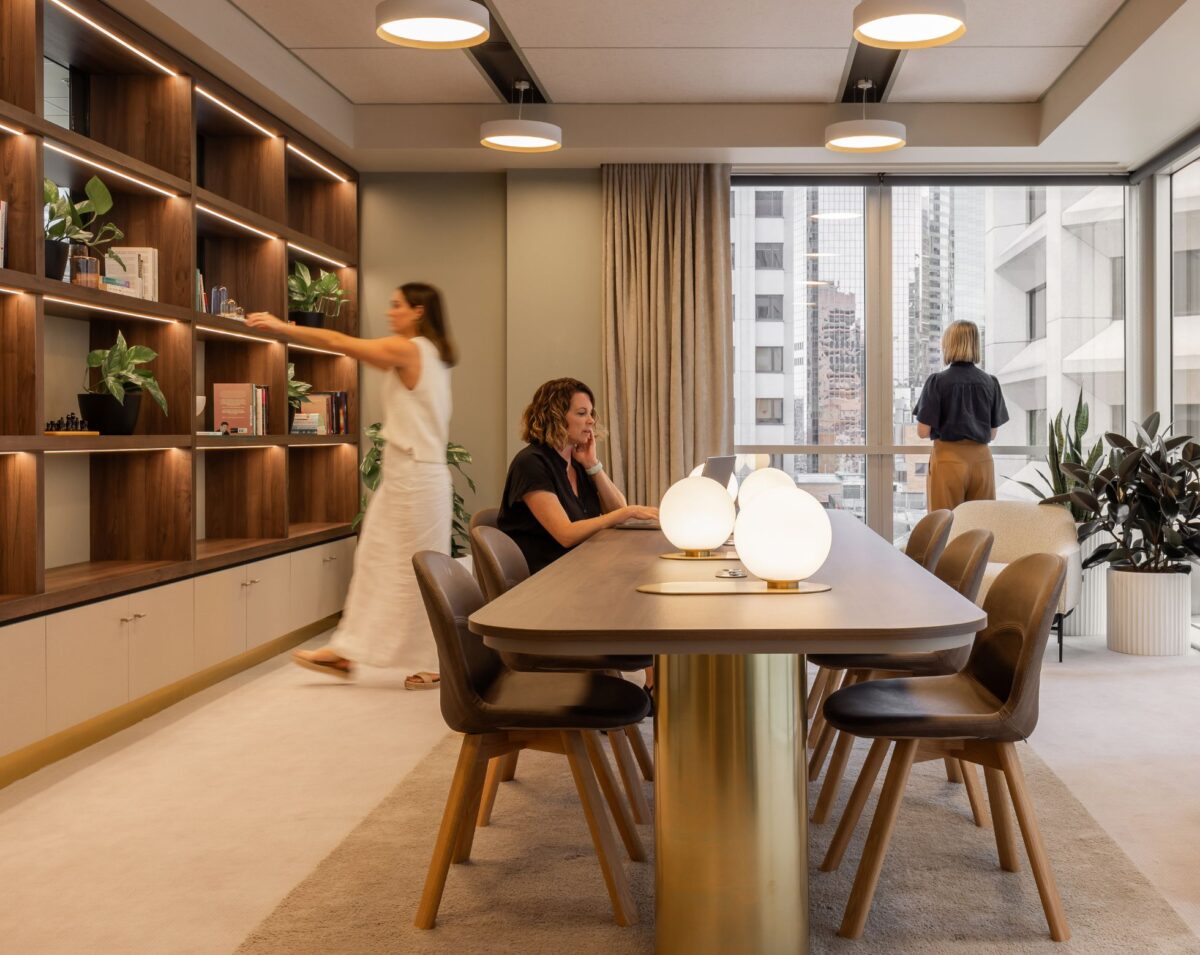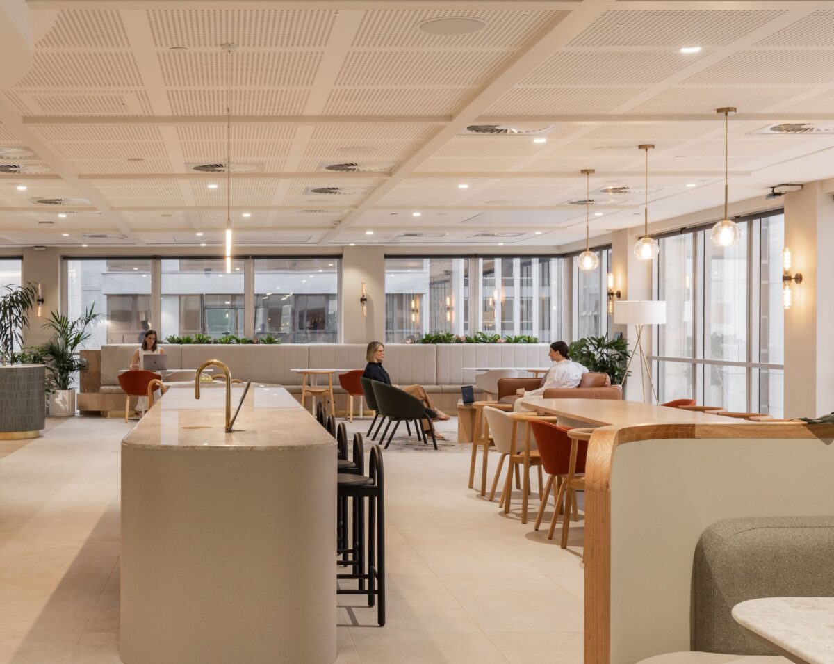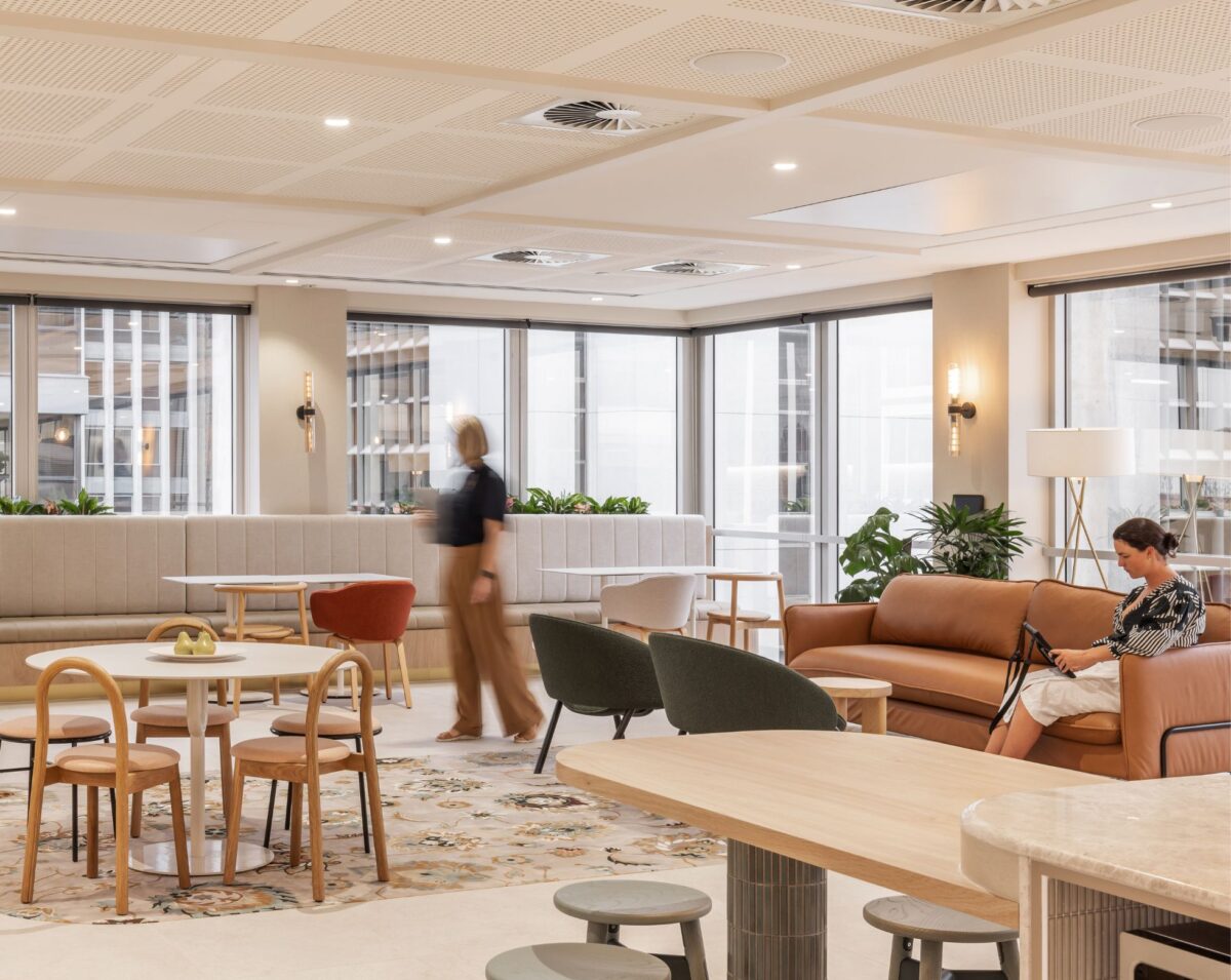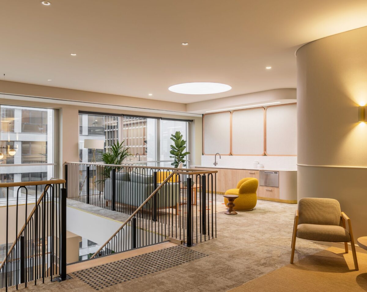 The project included an initial defit off the existing fitout to provide a blank canvas for construction to begin. Built over two expansive levels, the Cromwell workspace exudes comfort, timelessness and elegance with connection and collaboration at the forefront of the design. Throughout the fitout, shared spaces and private work zones promote community, enhance wellbeing and provide integrated learning experiences for employees.