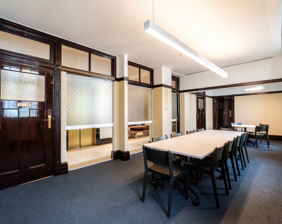 The works included the delivery of a complete office fitout, incorporating new workstations, meeting rooms, boardrooms, and kitchen and breakout facilities. Existing heritage elements were carefully refurbished and integrated into the design, balancing modern functionality with the building’s historic fabric.